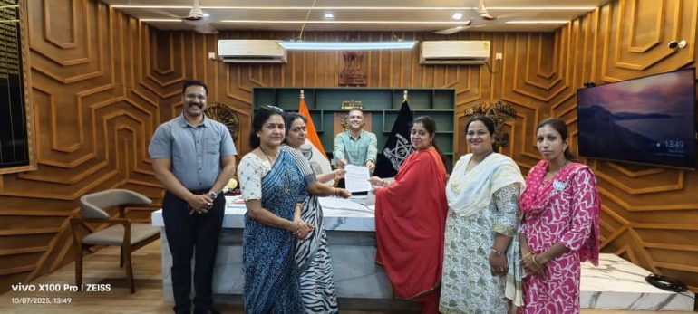 रत्नगिरी – भारतीय जनता पार्टी महिला मोर्चा जिल्हाध्यक्षा सौ. वर्षा परशुराम ढेकणे यांनी आज रत्नागिरीचे पोलीस अधीक्षक श्री नितीन दत्तात्रय बगाटे साहेब यांची भेट घेऊन महिलांसाठी आयोजित करण्यात येणाऱ्या विशेष महिला आरोग्य तपासणी शिबिरासंदर्भात सविस्तर चर्चा केली.या प्रसंगी महिला मोर्चाच्या सौ. प्राजक्ता रूमडे, सौ. नपुरा मुळे, सौ. कामना बेग, सौ. भक्ती दळी तसेच इतर महिला कार्यकर्त्या उपस्थित होत्या.