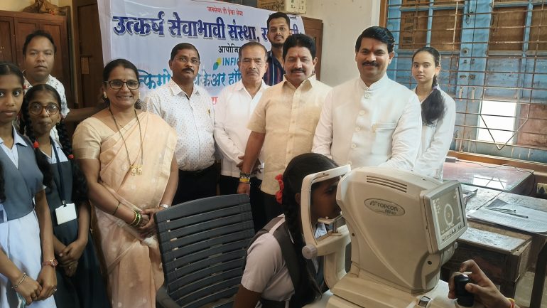 रत्नागिरी : भारतीय जनता पार्टीचे प्रदेशाध्यक्ष रविंद्र चव्हाण साहेब यांचे स्वीय सहायक श्री. अनिकेत पटवर्धन यांच्या वाढदिवसानिमित्त उत्कर्ष सेवाभावी संस्था रत्नागिरी यांच्यावतीने इन्फिगो आयकेअर हॉस्पिटल रत्नागिरी यांच्या सौजन्याने आयोजित शालेय विद्यार्थांना मोफत नेत्र तपासणी व मोफत चष्मे वाटप कार्यक्रम गोंदूताई जांबेकर विद्यालय रत्नागिरी येथे आयोजित करण्यात आले होते.