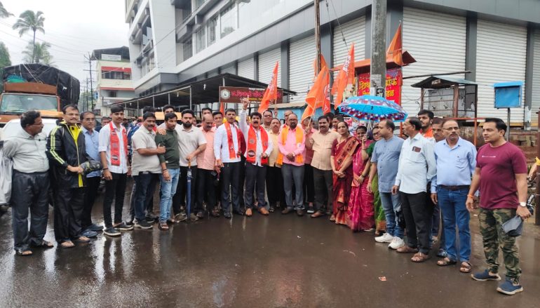 - चिपळूण – महाराष्ट्र राज्य सरकारने हिंदी भाषेचा जीआर रद्द केला ह्या आनंदप्रित्यर्थ शिवसेना उद्धव बाळासाहेब ठाकरे व मनसे पक्षातर्फे चिंचनाका येथे छत्रपती शिवाजी महाराज यांना पुष्पहार अर्पण करून छत्रपती शिवाजी महाराज की जय, हिंदुहृदयसम्राट बाळासाहेब ठाकरे, उद्धव बाळासाहेब ठाकरे व राजसाहेब ठाकरे यांच्या घोषनांनी परिसर दणानून सोडला.